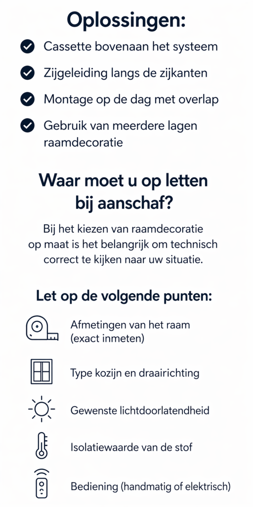 Bij het kiezen van raamdecoratie op maat is het belangrijk om technisch correct te kijken naar uw situatie.