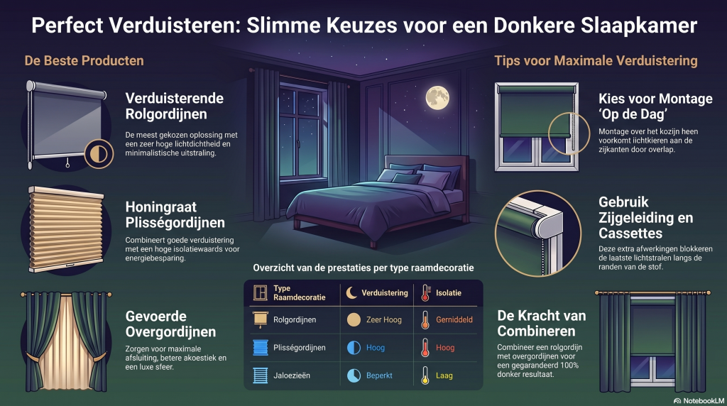 Voor een volledig donkere slaapkamer is één product vaak niet voldoende. Combineren is de meest effectieve aanpak.