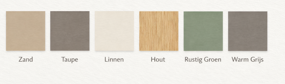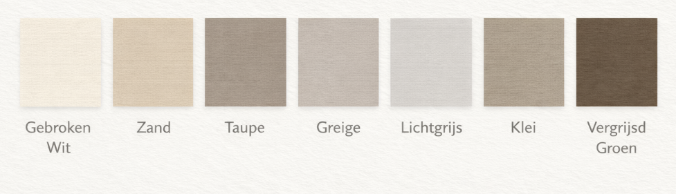 | Zand | Warm en natuurlijk | Vouwgordijnen, overgordijnen |