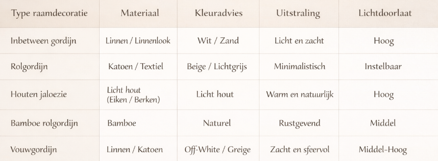 In deze blog lees je hoe je raamdecoratie kiest die past bij een Scandinavisch interieur. We bespreken de belangrijkste materialen, het kleurgebruik en de meest geschikte soorten raamdecoratie. Daarnaast vind je een overzichtelijke tabel die helpt bij het maken van de juiste keuze.