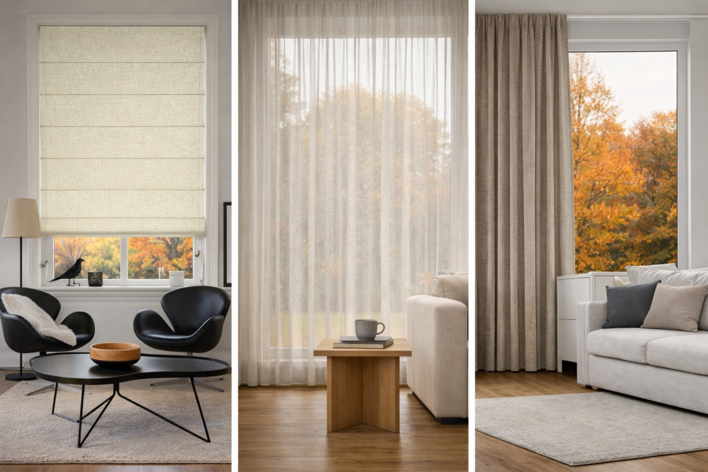 | Herfst | Minder licht, meer behoefte aan sfeer | Vouwgordijnen, overgordijnen, inbetweens |