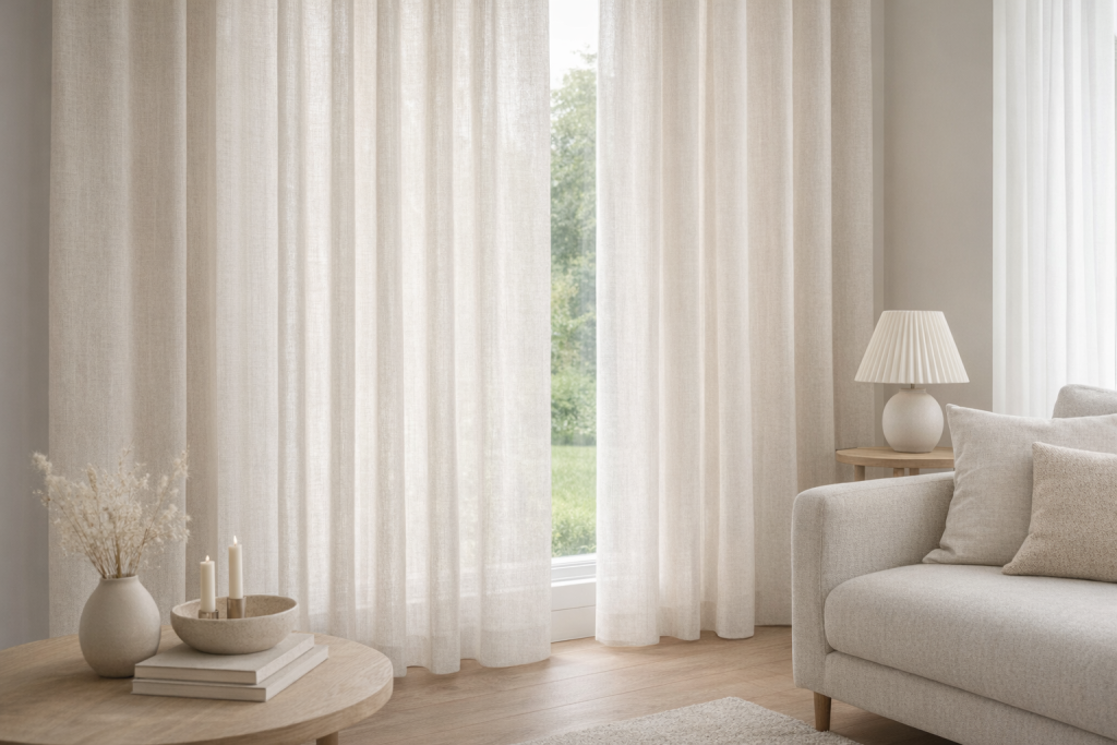 Lichte raamdecoratie zorgt voor een zachtere overgang tussen het raam, de wand en de rest van het interieur. Daardoor oogt de ruimte minder vol. Zeker in kleinere woonkamers, slaapkamers of thuiskantoren is dat een belangrijk voordeel.