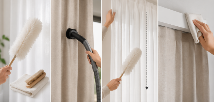 - gebruik bij gordijnen de zachte borstel van de stofzuiger
