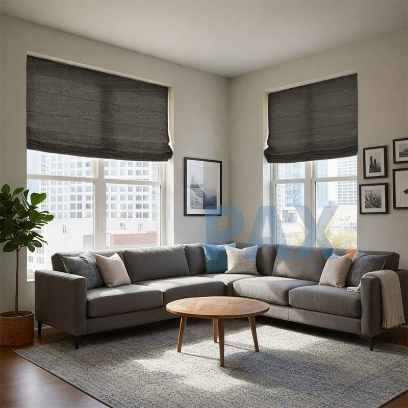 Vouwgordijn op maat Linnenlook Antraciet - Volosity026