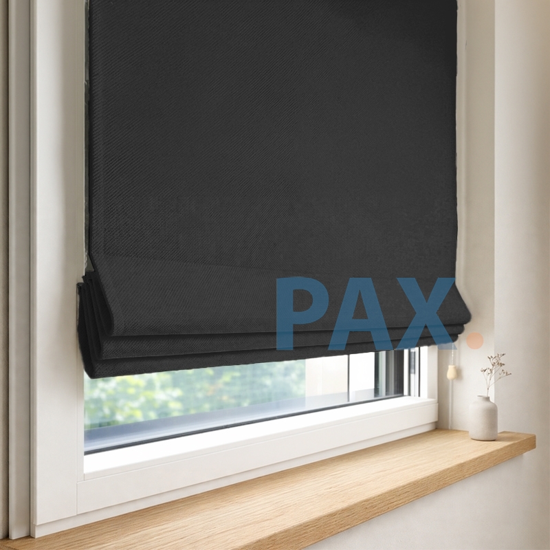 Vouwgordijnen op maat gemaakt met Luxe cassette. Verduisterende stof in de kleur Zwart. De uni collectie California is een 100% verduisterende stof van zeer hoge kwaliteit met mooie lichte glans. Deze stof is ook beschikbaar als normaal gordijn. De stof heeft een mooi profiel & luxe uitstraling. Ideaal voor de slaapkamer maar ook veel gekocht voor de huiskamer. Kies de gewenste bediening, kleur stof en andere opties. Met de hand gemaakt in Nederland.